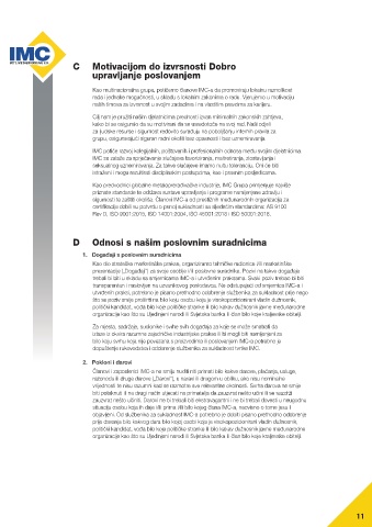 IMC potiče razvoj kolegijalnih, poštovanih i profesionalnih odnosa među svojim djelatnicima.