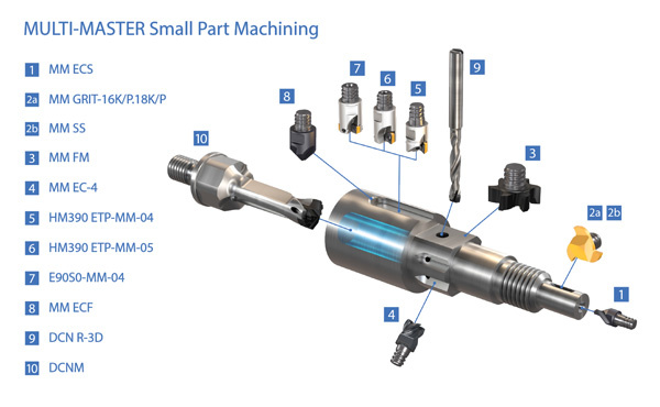 可换刀头式组装装配刀具指伊斯卡在市场上持续获得成功的变形金刚立铣刀(MULTI-MASTER)系列及变色龙钻(CHAMDRILL)系列,囊括了不同系列铣刀头或钻头刀头,用于铣削加工及孔加工。然而,为什么这些产品系列如此高效,尤其是在小零件的生产制造中?为什么这抓住了零件制造商们的眼球呢?