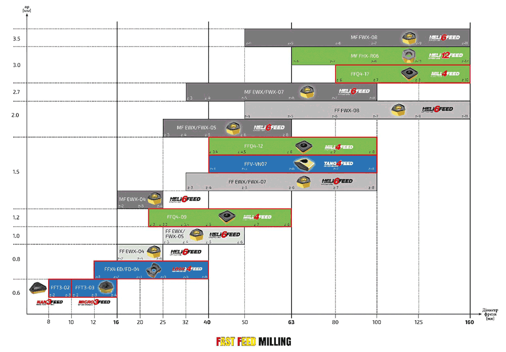 Рис. 5. Загальна діаграма застосування фрез ISCAR для великих значень подач